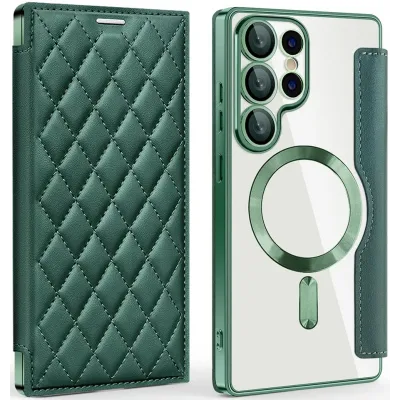 • Phonesta Luxury Crystal Puffed Book Wallet Case hoesje met MagSafe voor Samsung Galaxy S25 Ultra - Donkergroen
