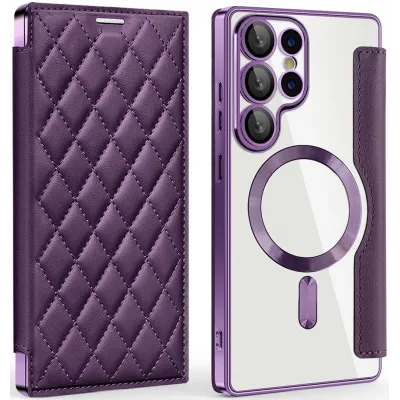 • Phonesta Luxury Crystal Puffed Book Wallet Case hoesje met MagSafe voor Samsung Galaxy S25 Ultra - Donkerpaars