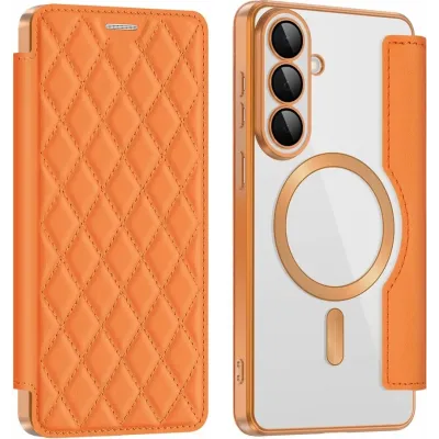 • Phonesta Luxury Crystal Puffed Book Wallet Case hoesje met MagSafe voor Samsung Galaxy S26 - Oranje