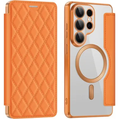 • Phonesta Luxury Crystal Puffed Book Wallet Case hoesje met MagSafe voor Samsung Galaxy S26 Ultra - Oranje