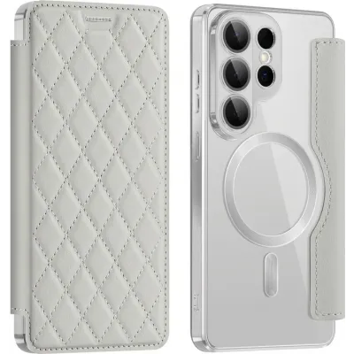 • Phonesta Luxury Crystal Puffed Book Wallet Case hoesje met MagSafe voor Samsung Galaxy S26 Ultra - Zilver