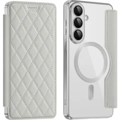 • Phonesta Luxury Crystal Puffed Book Wallet Case hoesje met MagSafe voor Samsung Galaxy S26 - Zilver
