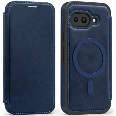 Phonesta Luxury Leather Book Wallet Case hoesje met MagSafe voor Google Pixel 9a - Donkerblauw