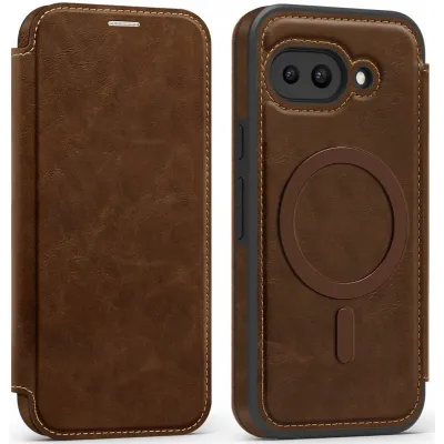 • Phonesta Luxury Leather Book Wallet Case hoesje met MagSafe voor Google Pixel 9a - Donkerbruin