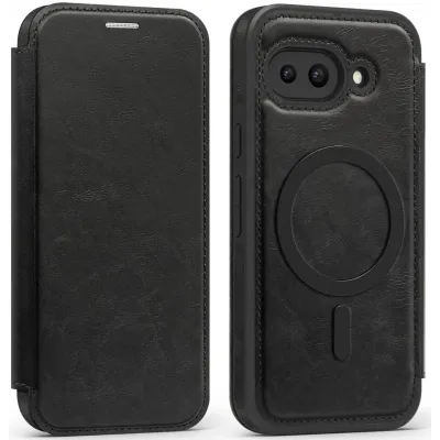 • Phonesta Luxury Leather Book Wallet Case hoesje met MagSafe voor Google Pixel 9a - Zwart