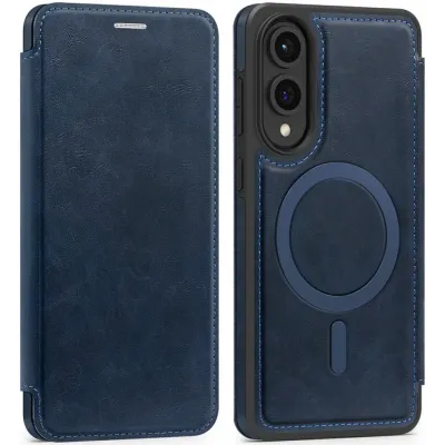 Phonesta Luxury Leather Book Wallet Case hoesje met MagSafe voor Samsung Galaxy S25 Edge - Donkerblauw