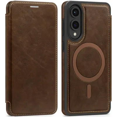 • Phonesta Luxury Leather Book Wallet Case hoesje met MagSafe voor Samsung Galaxy S25 Edge - Donkerbruin