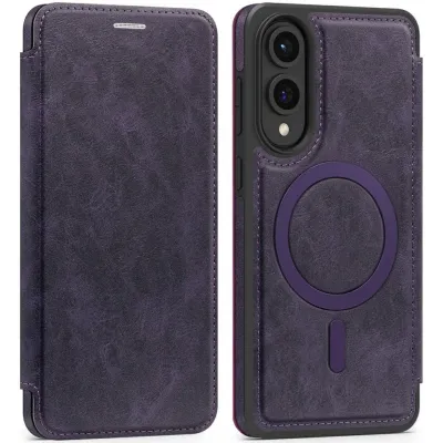 Phonesta Luxury Leather Book Wallet Case hoesje met MagSafe voor Samsung Galaxy S25 Edge - Donkerpaars