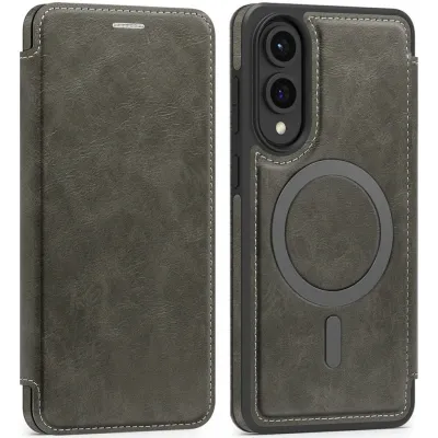• Phonesta Luxury Leather Book Wallet Case hoesje met MagSafe voor Samsung Galaxy S25 Edge - Grijs