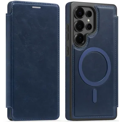 Phonesta Luxury Leather Book Wallet Case hoesje met MagSafe voor Samsung Galaxy S25 Ultra - Donkerblauw