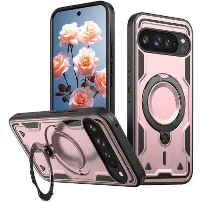 TelefoonhoesjesGoogle hoesjesGoogle Pixel 9 hoesjesPhonesta MagLock Armor Back Cover hoesje met ring en MagSafe voor Google Pixel 9 / 9 Pro - Roségoud