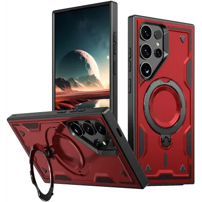 • Phonesta MagLock Armor Back Cover hoesje met ring en MagSafe voor Samsung Galaxy S25 Ultra - Rood