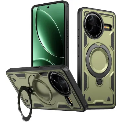 TelefoonhoesjesXiaomi hoesjesXiaomi Poco F7 Ultra hoesjesPhonesta MagLock Armor Back Cover hoesje met ring en MagSafe voor Xiaomi Poco F7 Pro/F7 Ultra - Groen