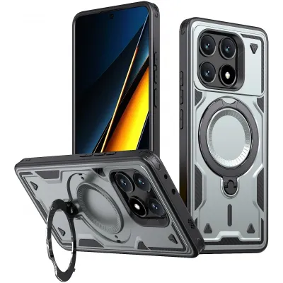 • Phonesta MagLock Armor Back Cover hoesje met ring en MagSafe voor Xiaomi Poco X6 Pro - Grijs