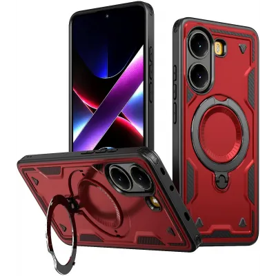 • Phonesta MagLock Armor Back Cover hoesje met ring en MagSafe voor Xiaomi Poco X7 Pro - Rood