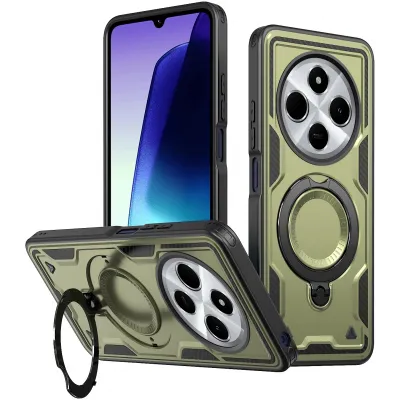 TelefoonhoesjesXiaomi hoesjesXiaomi Poco C75 hoesjesPhonesta MagLock Armor Back Cover hoesje met ring en MagSafe voor Xiaomi Redmi 14C / Xiaomi Poco C75 - Groen