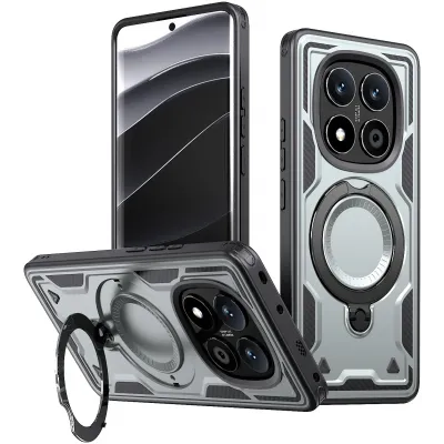 • Phonesta MagLock Armor Back Cover hoesje met ring en MagSafe voor Xiaomi Redmi Note 14 Pro 4G/5G/14 Pro Plus / Xiaomi Poco X7 - Grijs