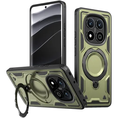 TelefoonhoesjesXiaomi hoesjesXiaomi Redmi Note 14 Pro Plus hoesjesPhonesta MagLock Armor Back Cover hoesje met ring en MagSafe voor Xiaomi Redmi Note 14 Pro 4G/5G/14 Pro Plus / Xiaomi Poco X7 - Groen