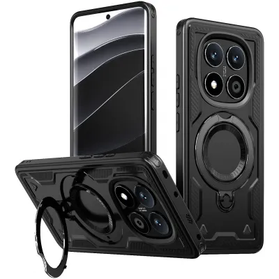 Phonesta MagLock Armor Back Cover hoesje met ring en MagSafe voor Xiaomi Redmi Note 14 Pro 4G/5G/14 Pro Plus / Xiaomi Poco X7 - Zwart