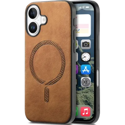 • Phonesta Retro Vegan Leather MagSafe Back Cover hoesje voor Apple iPhone 16 - Bruin