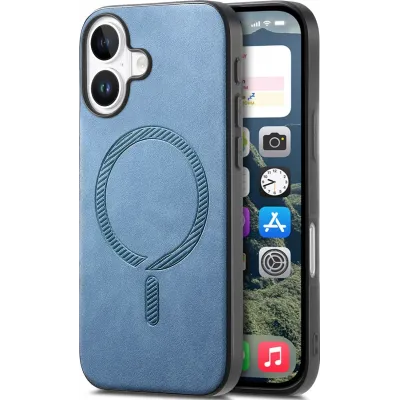• Phonesta Retro Vegan Leather MagSafe Back Cover hoesje voor Apple iPhone 16 Plus - Blauw