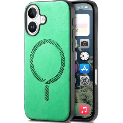 • Phonesta Retro Vegan Leather MagSafe Back Cover hoesje voor Apple iPhone 16 Plus - Groen