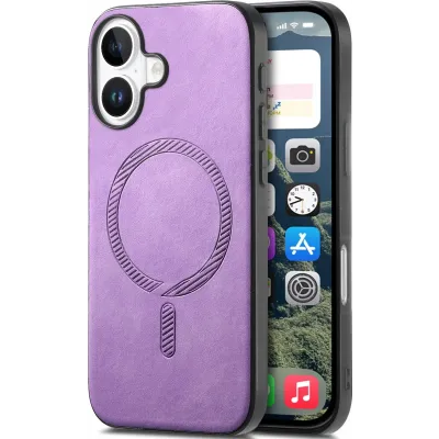 • Phonesta Retro Vegan Leather MagSafe Back Cover hoesje voor Apple iPhone 16 Plus - Paars