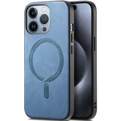 • Phonesta Retro Vegan Leather MagSafe Back Cover hoesje voor Apple iPhone 16 Pro - Blauw