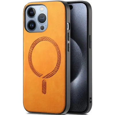 • Phonesta Retro Vegan Leather MagSafe Back Cover hoesje voor Apple iPhone 16 Pro - Oranje