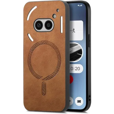 • Phonesta Retro Vegan Leather MagSafe Back Cover hoesje voor Nothing Phone (2a) / (2a) Plus - Bruin