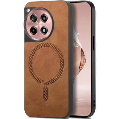 • Phonesta Retro Vegan Leather MagSafe Back Cover hoesje voor OnePlus 12R - Bruin