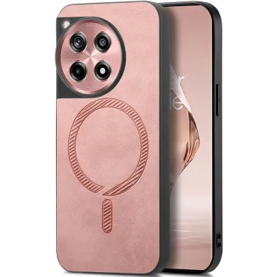 Phonesta Retro Vegan Leather MagSafe Back Cover hoesje voor OnePlus 12R - Roze