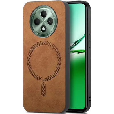 • Phonesta Retro Vegan Leather MagSafe Back Cover hoesje voor Oppo Reno12 F/Reno12 FS - Bruin
