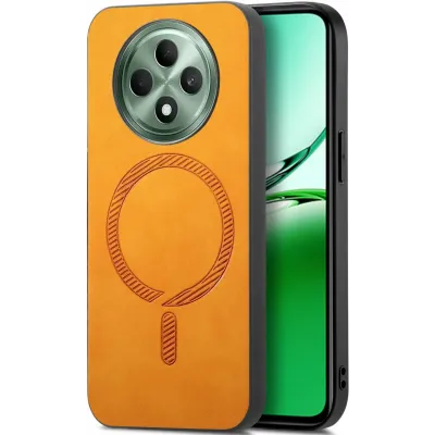 • Phonesta Retro Vegan Leather MagSafe Back Cover hoesje voor Oppo Reno12 F/Reno12 FS - Oranje