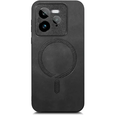 Phonesta Retro Vegan Leather MagSafe Back Cover hoesje voor Realme GT 7 Pro - Zwart