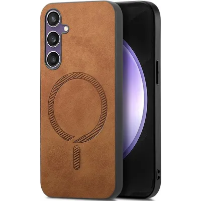 TelefoonhoesjesSamsung Galaxy hoesjesSamsung Galaxy S24 FE hoesjesPhonesta Retro Vegan Leather MagSafe Back Cover hoesje voor Samsung Galaxy S24 FE - Bruin