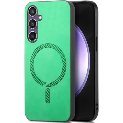 • Phonesta Retro Vegan Leather MagSafe Back Cover hoesje voor Samsung Galaxy S24 FE - Groen