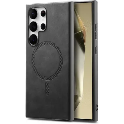 • Phonesta Retro Vegan Leather MagSafe Back Cover hoesje voor Samsung Galaxy S25 Ultra - Zwart