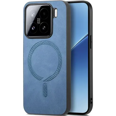 TelefoonhoesjesXiaomi hoesjesXiaomi 15 hoesjesPhonesta Retro Vegan Leather MagSafe Back Cover hoesje voor Xiaomi 15 - Blauw
