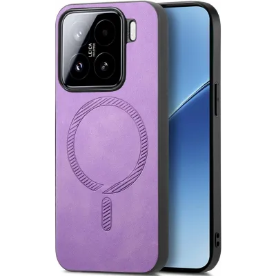 TelefoonhoesjesXiaomi hoesjesXiaomi 15 hoesjesPhonesta Retro Vegan Leather MagSafe Back Cover hoesje voor Xiaomi 15 - Paars