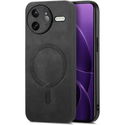 TelefoonhoesjesXiaomi hoesjesXiaomi Poco F7 Ultra hoesjesPhonesta Retro Vegan Leather MagSafe Back Cover hoesje voor Xiaomi Poco F7 Ultra - Zwart