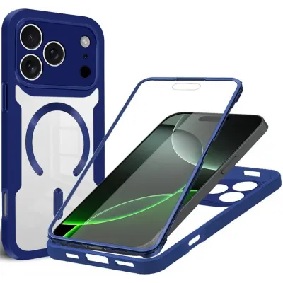 • Phonesta Slim Protect 360 hoesje met Screenprotector en MagSafe voor Apple iPhone 17 Pro Max - Blauw