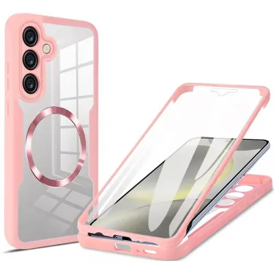 • Phonesta Slim Protect 360 hoesje met Screenprotector en MagSafe voor Samsung Galaxy S25/S24 - Roze
