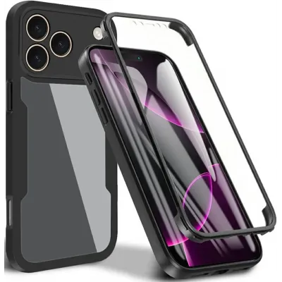 • Phonesta Slim Protect 360 hoesje met Screenprotector voor Apple iPhone 17 Pro Max - Zwart