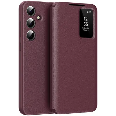TelefoonhoesjesSamsung Galaxy hoesjesSamsung Galaxy S24 FE hoesjesPhonesta Smart Window Book Wallet Case hoesje voor Samsung Galaxy S24 FE - Bordeaux