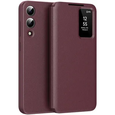 TelefoonhoesjesSamsung Galaxy hoesjesSamsung Galaxy S25 Edge hoesjesPhonesta Smart Window Book Wallet Case hoesje voor Samsung Galaxy S25 Edge - Bordeaux