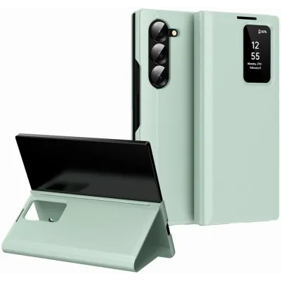 TelefoonhoesjesSamsung Galaxy hoesjesSamsung Galaxy Z Fold 6 hoesjesPhonesta Smart Window Book Wallet Case hoesje voor Samsung Galaxy Z Fold 6 - Lichtgroen