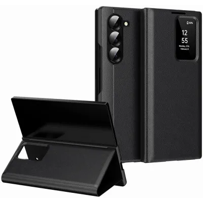 TelefoonhoesjesSamsung Galaxy hoesjesSamsung Galaxy Z Fold 6 hoesjesPhonesta Smart Window Book Wallet Case hoesje voor Samsung Galaxy Z Fold 6 - Zwart