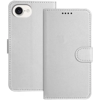 • Phonesta Smooth Skin Book Wallet Case hoesje voor Apple iPhone 17e/16e - Zilver