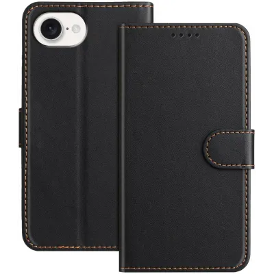 • Phonesta Smooth Skin Book Wallet Case hoesje voor Apple iPhone 17e/16e - Zwart